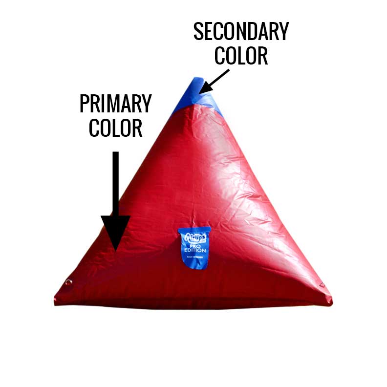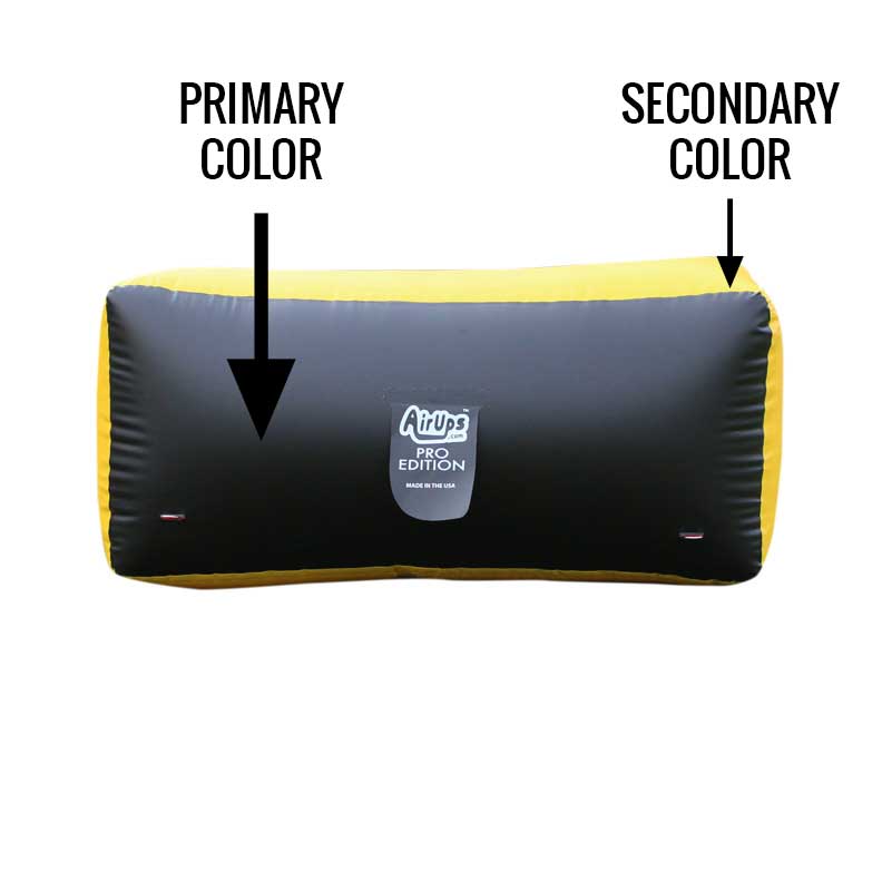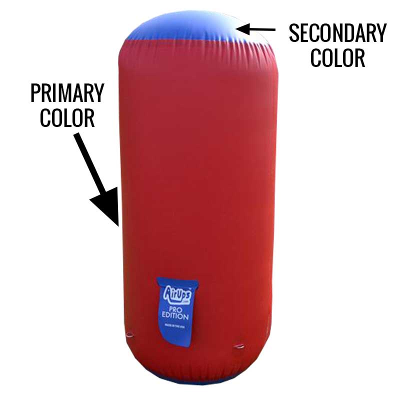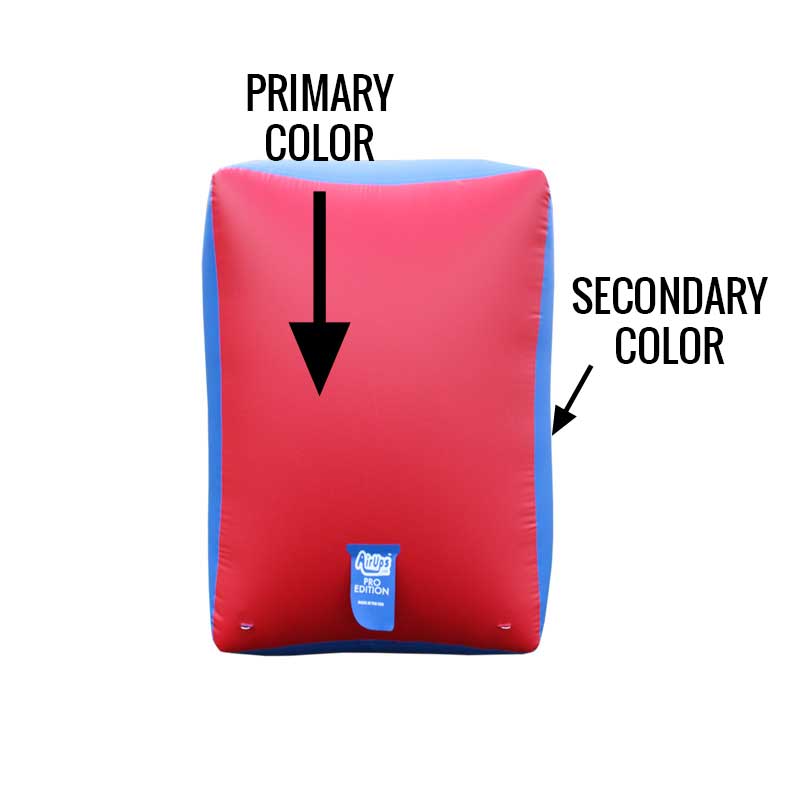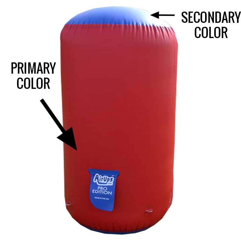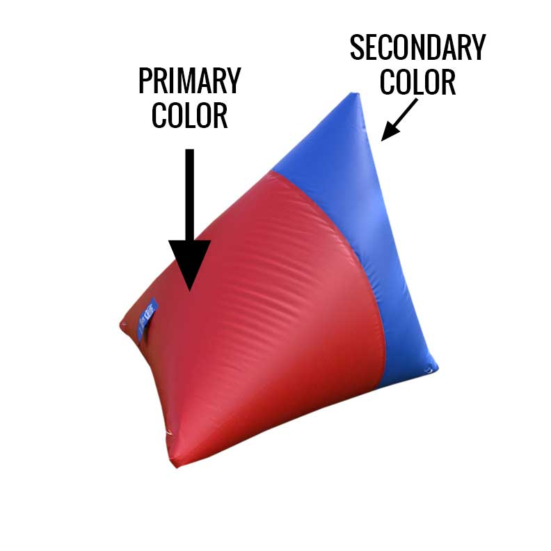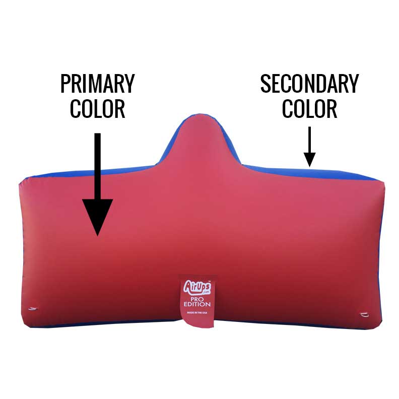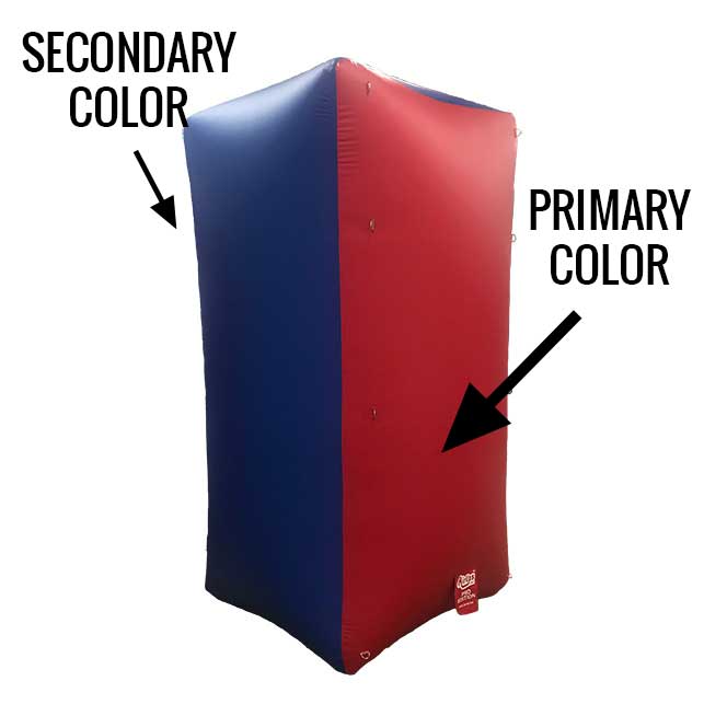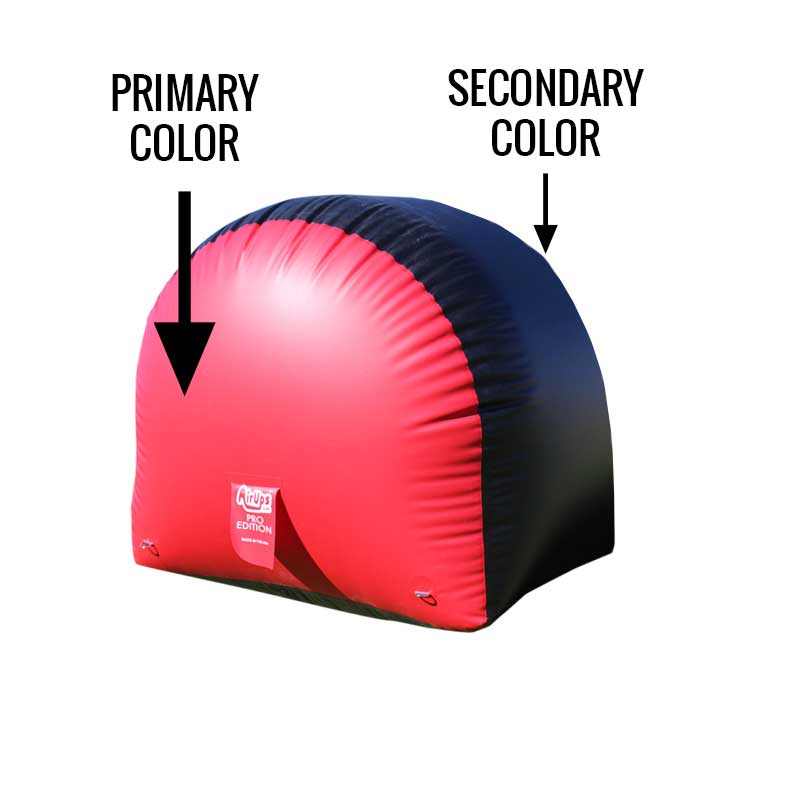 Typically the primary color is what shows the most and the secondary is the ends or sides to the inflatable bunker. With each shape being unique, it does help to map out your color choices when you are ordering. Most of the common bunkers color locations are listed below. You will also find the location image on each item in our shopping cart for quick easy reference.